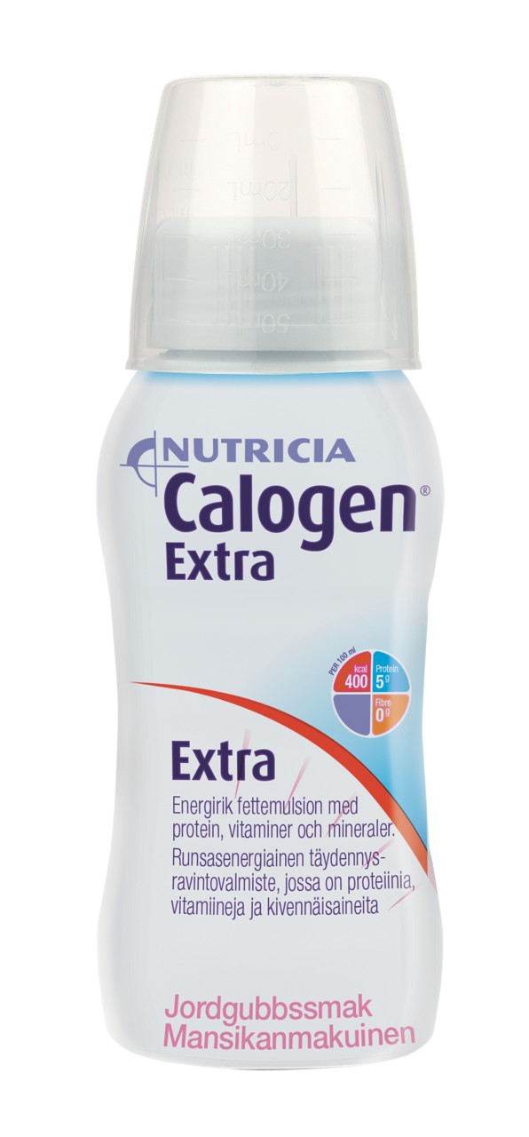 Calogen Extra on rasvalisä, joka sisältää runsaasti energiaa, vitamiineja ja kivennäisaineita sekä myöskin proteiinia. Sisältää sokeria ja makeutusaineita. Calogen Extra sopii käytettäväksi ruokavaliohoitoon ja ruoan rikastamiseen potilaille, jotka eivät saa tarpeeksi energiaa tai vitamiineja ja kivennäisaineita normaalista ruoasta tai täydennysravintojuomista. Voidaan lisätä myös täydennysravintojuomiin tai letkuravintovalmisteisiin. Calogen Extra poikkeaa siis perinteisistä täydennysravintojuomista ja sitä tulee annostella ohjeen mukaisesti.