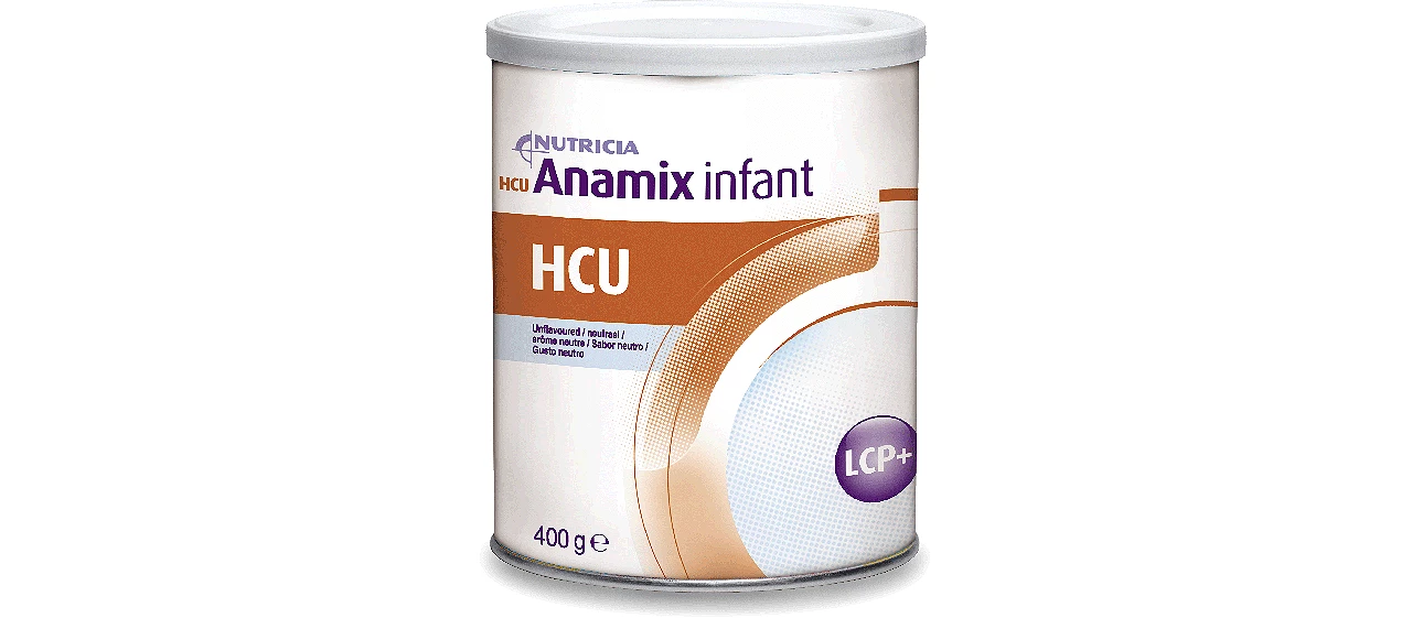 HCU Anamix Infant on aminohappopohjainen jauhemainen imeväisen erityisvalmiste homokystinurian (HCU)/ CBS-puutoksen tai hypermetioninemian ruokavaliohoitoon. Soveltuu käytettäväksi syntymästä lähtien 1-ikävuoteen saakka.